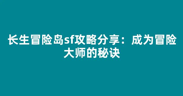 长生冒险岛sf攻略分享:成为冒险大师的秘诀