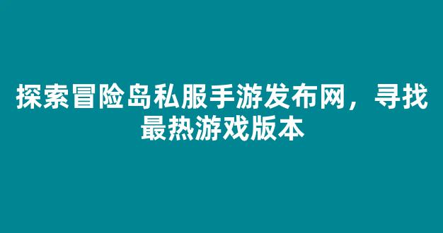 在如今的手游市场中,冒险岛私服游戏成为了玩家们非常喜爱的选择。通过私服,玩家可以体验到不一样的游戏版本和更高的自由度。本文将带您探索冒险岛私服手游发布网,寻找最热的游戏版本,满足您对冒险岛私服游戏的所有期待。